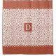 White and terracotta damask pattern with scalloped borders and monogram shower curtain. On the upper and the bottom parts of the curtain there are clay colour bands with scalloped edges while in the centre there is your monogram. You can personalize it with your name.