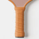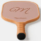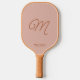 Muted blush pink terracotta, tan copper coloured pickleball paddle with a cute handwriting script one initial monogram, and optional personalized name and phone number in a simple, subtle, classic-modern trendy design with a boho desert vibe.