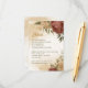 Beautiful earth tone fall wedding enclosure card featuring terracotta and gold beige flowers with green leaves . The gold glitter details are simulated.