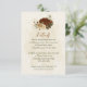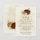 Beautiful earth tone fall wedding reception details enclosure card featuring terracotta, beige and cream flowers with green leaves .