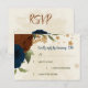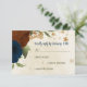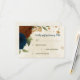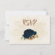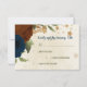 Beautiful earth tone fall wedding response card featuring terracotta, beige and navy blue flowers with green leaves .