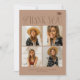 Elegant graduation thank you template card to send out to those who congratulated you, attended your graduation party, gave you gifts etc. It says "thank you" in a typography text mixed with script and serif fonts. The background is terracotta. There are 4 photos on the front of the card.