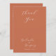A beautiful design showcasing elegant script calligraphy typography on a terracotta burnt orange background . Perfect for anyone who loves modern minimalist designs. A stylish and trendy wedding thank you card design with classic elements. Matching wedding stationery items and other wedding invite formats are also available.