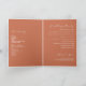 A beautiful design showcasing elegant script calligraphy typography on a terracotta burnt orange background . Perfect for anyone who loves modern minimalist designs. A stylish and trendy wedding order of service program fan design with classic elements. Matching wedding invitations and other stationery items are also available.