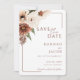 Celebrate your love story in timeless style with this elegant floral Save the Date card, designed to set the tone for your wedding day. Featuring romantic ivory blooms, warm terracotta florals, and soft earthy greenery, this design blends modern minimalism with rustic garden charm. The clean layout and refined typography create a sophisticated yet inviting look, perfect for fall weddings, boho celebrations, outdoor ceremonies, or classic romantic themes.