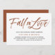 Fall in love! Invite guests to your event with this customizable rehearsal dinner invitation. It features brush lettering and simple typography. Personalize by adding your event details. This terracotta rehearsal dinner invitation is perfect for fall or autumn weddings. Matching items are available.