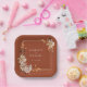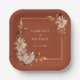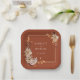 Terracotta Fall Paper Plate. Serve your celebration in style with these square paper plates, showcasing a stunning arrangement of hand-painted watercolor burnt orange and terracotta leaves, soft cream and beige dahlias, and rich copper and rust-coloured roses. The warm copper background adds a cozy, elegant touch, making these plates a beautiful and practical addition to your autumn wedding. Elevate your tablescape—customize your square plates now.