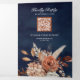 Terracotta Floral All in One QR Code Navy Wedding Tri-Fold Invitation