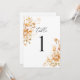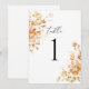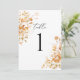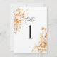 An elegant terracotta floral wedding table number featuring soft watercolor blooms in burnt orange, warm beige, and neutral tones.