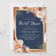 Terracotta Floral Navy Blue QR Code Bridal Shower Invitation