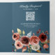 Terracotta Floral QR Code Dusty Blue Wedding Tri-Fold Invitation