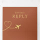 Invite your guests with this elegant travel theme wedding invitation featuring a beautiful gold world map on a terracotta background. Easily move the hearts to your desired location by clicking the customize button and adorn this card with your favorite photo to make it a one-of-a-kind invitation.