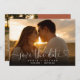 This elegant heart script photo save the date card features your photo and a script save the date above your names, date and venue. The reverse features an additional photo, message, and wedding website QR code. Designed by Thisisnotme©