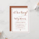 Invite guests to your event with this customizable baby shower invitation. It features a terracotta calligraphy script. Personalize by adding your details. This boho baby shower invitation is perfect for any baby shower theme or season.