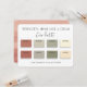 Color Scheme Palette for your wedding, home or marketing social media or branding. This card features a boho, natural feel with colors of Terra Cotta, sage greens, neural khaki and light creamy colors. Hex code included. Save time and the stress of selecting colors and give is card to the to your bridesmaids, wedding party, or party event planner. Great to take to the paint counter so they can match your home decor, cabinets, or house colors. I have many matching invitations with this color scheme, so check out my store McBooboos or email me at tkatz@me.com or my pinterest page.
