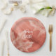 These autumnal wedding paper plates have a terracotta colour theme featuring subtle monochromatic maple leaves accenting a blush to terracotta gradient background - by katz_d_zynes