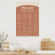 This terracotta minimalist alphabetical seating chart is perfect for a rustic wedding. The design features a beautiful font to embellish your event.