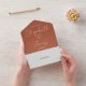 This all-in-one minimalist wedding invitation features elegant typography on a terracotta background. The invitation includes a perforated RSVP card that can be individually addressed or left blank so you can handwrite your guest's address details. Designed by Thisisnotme©