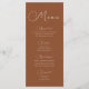 This menu is characterized by boho style, terracotta and beige colours, with a mix of different font styles, often in different sizes, to create a unique, eclectic look that makes these menus a natural aesthetic.