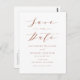 Announce your wedding date to family and friends with this minimalist save the date announcement postcard. It features a terracotta dainty script and classic typography. Personalize by adding your details. This boho save the date postcard is perfect for any wedding theme or season.