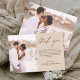 Our Minimalist Wedding Thank You Photo Simple card is the epitome of elegance and gratitude. With a clean, understated design and space for your favourite wedding photo, it's the perfect way to express your thanks to loved ones. Personalize with your message and send a heartfelt token of appreciation that will be cherished for years to come. Whether you're thanking guests for their presence, gifts, or support, this card delivers your gratitude in a timeless and minimalist style. Each card is crafted with attention to detail, ensuring a sophisticated presentation that reflects the beauty of your special day. Say thank you with simplicity and style using our Minimalist Wedding Thank You Photo Simple card, a perfect memento of your love and appreciation.