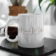 A sleek and professional custom logo mug featuring a modern terracotta script paired with clean minimalist typography. Perfect for event planners, small business owners, or creatives who want to showcase their brand with subtle elegance. The warm earthy tone and simple design make this mug a timeless addition to any workspace or client gift.