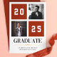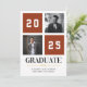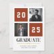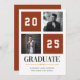 Célébrez le jalon de votre diplômé avec ce faire-part de graduation de collage photo en terre cuite moderne. Ce design comporte deux espaces réservés aux photos et une mise en page audacieuse et variée avec l'année affichée en évidence. Customisez-le avec le nom de votre diplômé et le lycée. Une façon élégante et contemporaine d'annoncer leur réalisation !