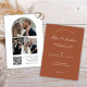 Celebrate your wedding in style with this trendy and eye-catching Terracotta Modern QR Code Photo Elegant Wedding Invitation. With a simple and elegant design, this invitation features a stylish script typography that perfectly complements the minimalist aesthetic. The warm and inviting terracotta colour adds a touch of sophistication, making it the perfect choice for a fall wedding. The use of a QR code makes it easy for guests to access all the necessary details and RSVP with just a simple scan. The three photos on the back are arranged in a beautiful arch, making this invitation stand out from the rest. With its unique and timeless design, this wedding card will become a keepsake to cherish forever.