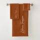A beautiful set of Terracotta burnt orange bathroom towels that can be customized to your name. The signature script font is classy and stylish.