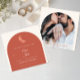 Announce your wedding with style and soul using this elegant terracotta Save the Date card featuring a romantic watercolor moon and stars design. The arched layout pairs your engagement photo on one side with custom wedding details on the other, creating a beautiful blend of personal and celestial. Perfect for boho, astrology, or rustic-themed weddings. Customize names, date, location, and image to create a keepsake guests will treasure.