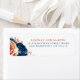 Terracotta and navy blue flowers address labels