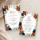 Elegant Navy blue, Terracotta , Orange earthy floral theme wedding program featuring elegant bouquet of Navy blue, Terracotta colour roses peonies and green eucalyptus leaves. Please contact me for any help in customization or if you need any other product with this design.