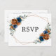 Elegant Navy blue, Terracotta , Orange earthy floral theme wedding RSVP postcard featuring elegant bouquet of Navy blue, Terracotta colour roses peonies and green eucalyptus leaves. Please contact me for any help in customization or if you need any other product with this design.