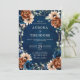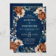 Elegant Navy blue, Terracotta , Orange earthy floral theme wedding Invitation featuring elegant bouquet of Navy blue, Terracotta colour roses peonies and green eucalyptus leaves. Please contact me for any help in customization or if you need any other product with this design.
