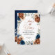 Elegant Navy blue, Terracotta , Orange earthy floral theme wedding save the date card featuring elegant bouquet of Navy blue, Terracotta colour roses peonies and green eucalyptus leaves. Please contact me for any help in customization or if you need any other product with this design.