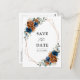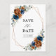 Elegant Navy blue, Terracotta , Orange earthy floral theme save the date postcard featuring elegant bouquet of Navy blue, Terracotta colour roses peonies and green eucalyptus leaves. Please contact me for any help in customization or if you need any other product with this design.