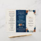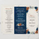 Elegant Navy blue, Terracotta , Orange earthy floral theme wedding tri fold program featuring elegant bouquet of Navy blue, Terracotta colour roses peonies and green eucalyptus leaves. Please contact me for any help in customization or if you need any other product with this design.