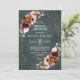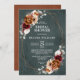 Elegant Red Burgundy, Terracotta , Orange earthy floral theme wedding Invitation featuring elegant bouquet of Marsala, Terracotta colour roses peonies and sage green eucalyptus leaves. Please contact me for any help in customization or if you need any other product with this design