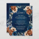 Elegant Navy blue, Terracotta , Orange earthy floral theme wedding details card featuring elegant bouquet of Navy blue, Terracotta colour roses peonies and green eucalyptus leaves. Please contact me for any help in customization or if you need any other product with this design.