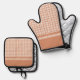 Terracotta Orange Light Tan Oven Mitt & Pot Holder Set