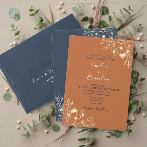Navy Blue Terracotta Gold Floral Wedding SuiteDesigned by Yana Bor