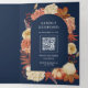 Terracotta Pumpkin Floral QR Code Navy Wedding Tri-Fold Invitation