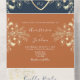 Chic and practical, this all-in-one terracotta wedding invitation features elegant gold floral accents, a monogram on a navy flap, and a modern QR code for RSVP. The folded format combines your invite, response section, and guest details in one convenient piece — no envelope needed. Perfect for rustic boho weddings, outdoor summer celebrations, or modern romantic themes. Personalize the names, date, website, and reply options with ease.