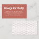 A simple books for baby insert with "Books for baby" in white retro style font on a terracotta background. The poem is editable. On the reverse is a terracotta and white polka dot pattern.