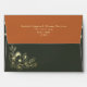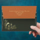 Simple, elegant, modern sage green and terracotta 5x7 envelope with unique, sophisticated faux gold floral lace, string lights and return address. Perfect choice for contemporary chic weddings!