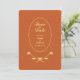 Add an elegant touch to your wedding invites with this terracotta and gold wedding save the date. The front features a rose design and "Save the Date," along with the name of the couple and the date of the wedding ceremony. Details of the wedding are on the back. Just change the text to fit your needs. Use the template to personalize.