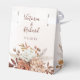 Modern bohemian style favour box featuring watercolor flowers and fall leaves in earthy tones like rust brown, burnt orange and terracotta. Perfect choice for autumn weddings.