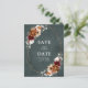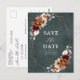 Elegant Red Burgundy, Terracotta , Orange earthy floral theme wedding save the date postcard featuring elegant bouquet of Marsala, Terracotta colour roses peonies and sage green eucalyptus leaves. Please contact me for any help in customization or if you need any other product with this design.