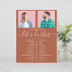 Featuring your two special photos. This stylish terracotta and white wedding schedule-timeline can be personalized with your wedding information in modern white lettering. Designed by Thisisnotme©