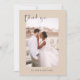 Romantic Wedding Thank You Cards that have a photo on the front and back. The Thank you cards contain a modern hand lettered cursive script typography that are elegant, simple and modern to use after you minimalist simple wedding day celebration.